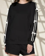 2PC Velvet Bow Short Set Black/White